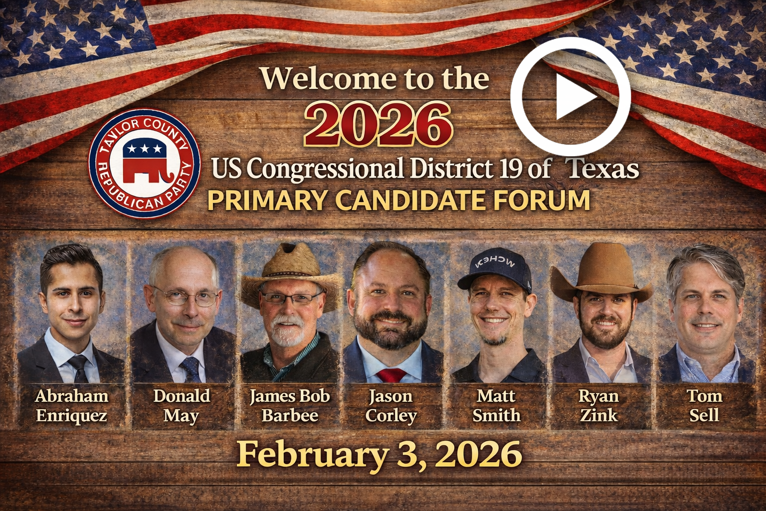 Here is the much anticipated video of the 2026 US Congressional District 19 of Texas Republican Primary Candidates Forum! (SEE CHAPTER TIME STAMPS BELOW)