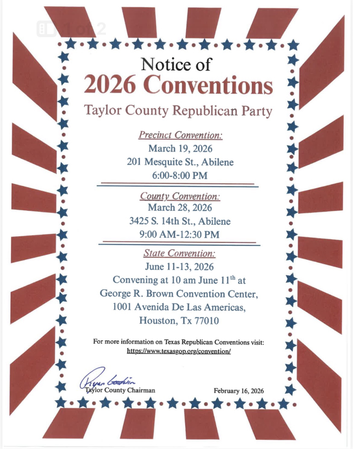 #HD71 #TexasLege #TCRP #TaylorCountyRepublicanParty #TaylorCounty #AbileneTX #BuffaloGapTX #TuscolaTX #MerkelTX #JonesCountyTX #AnsonTX #StamfordTX #HamlinTX #HawleyTX #CallahanTX #ClydeTX #BairdTX #CrossPlainsTX #NolanCountyTX #SweetwaterTX ... See MoreSee Less