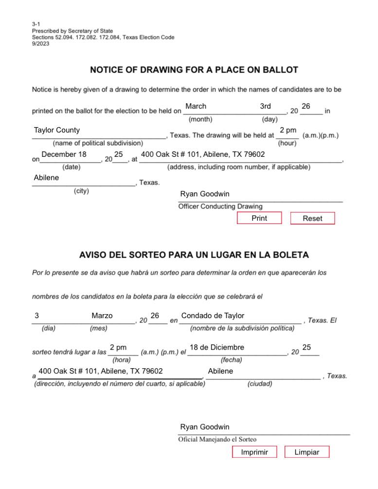 2026 TAYLOR COUNTY REPUBLICAN JOINT PRIMARY